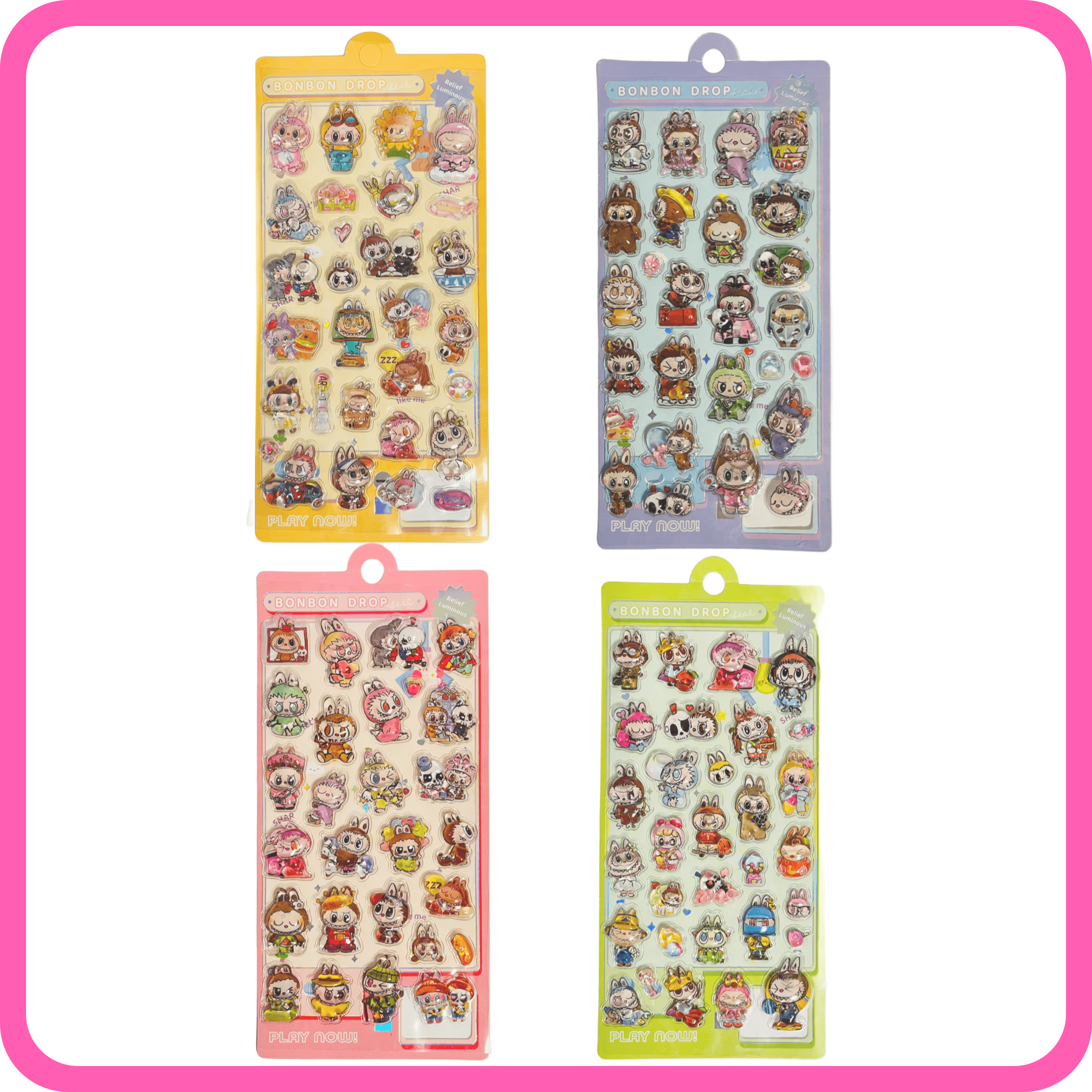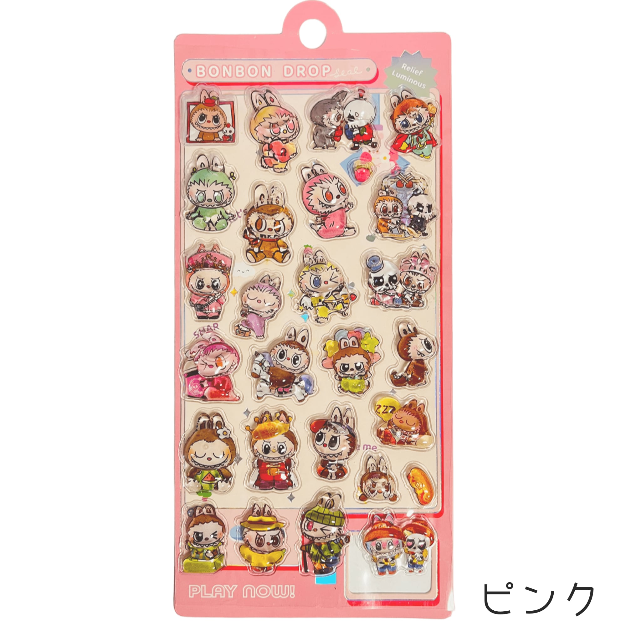 labubu LABUBU THE MONSTERS らぶぶ 水入り ステッカー ボンボン ドロップ ぷくぷく ぷっくり 立体 うるちゅる ギフト プレゼント ポップマート POP MART 流行 ブーム 人気 シール帳 おすすめ デコレーション かわいい 誕生日 記念日 女の子