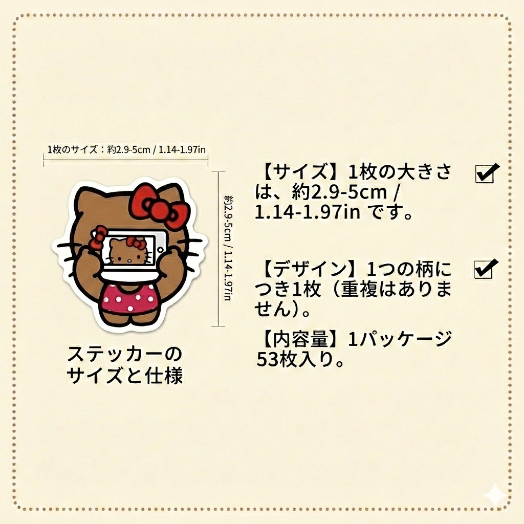 ハローキティ ステッカーセット【大容量53枚】日焼けキティ キャラクター デコシール